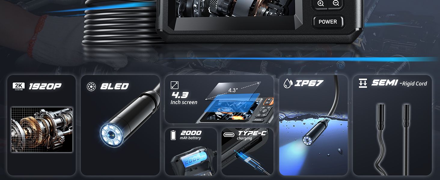 🔍Industrial X-Ray Vision! 8mm Endoscope 1920P HD|6nm Chip & IP67 Rated|Power On & Inspect!