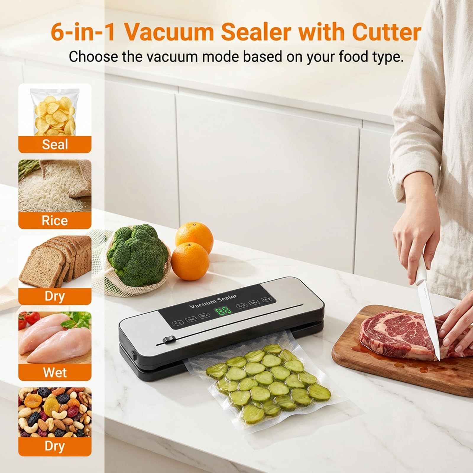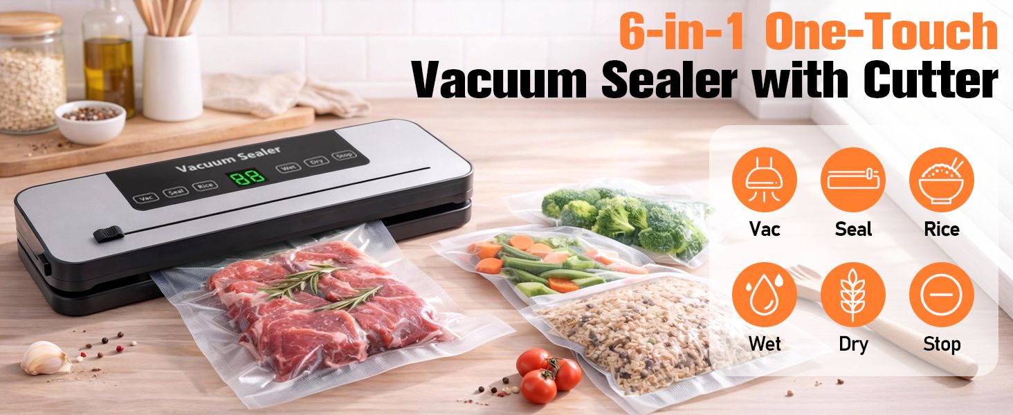 💥Bestseller Multi-function Vacuum Packaging Machine💜Deep UV Sterilization🔪Built-in External Cutter💧Dry&Wet Universal Home Food Sealer🎁Free Thick Vacuum Bags